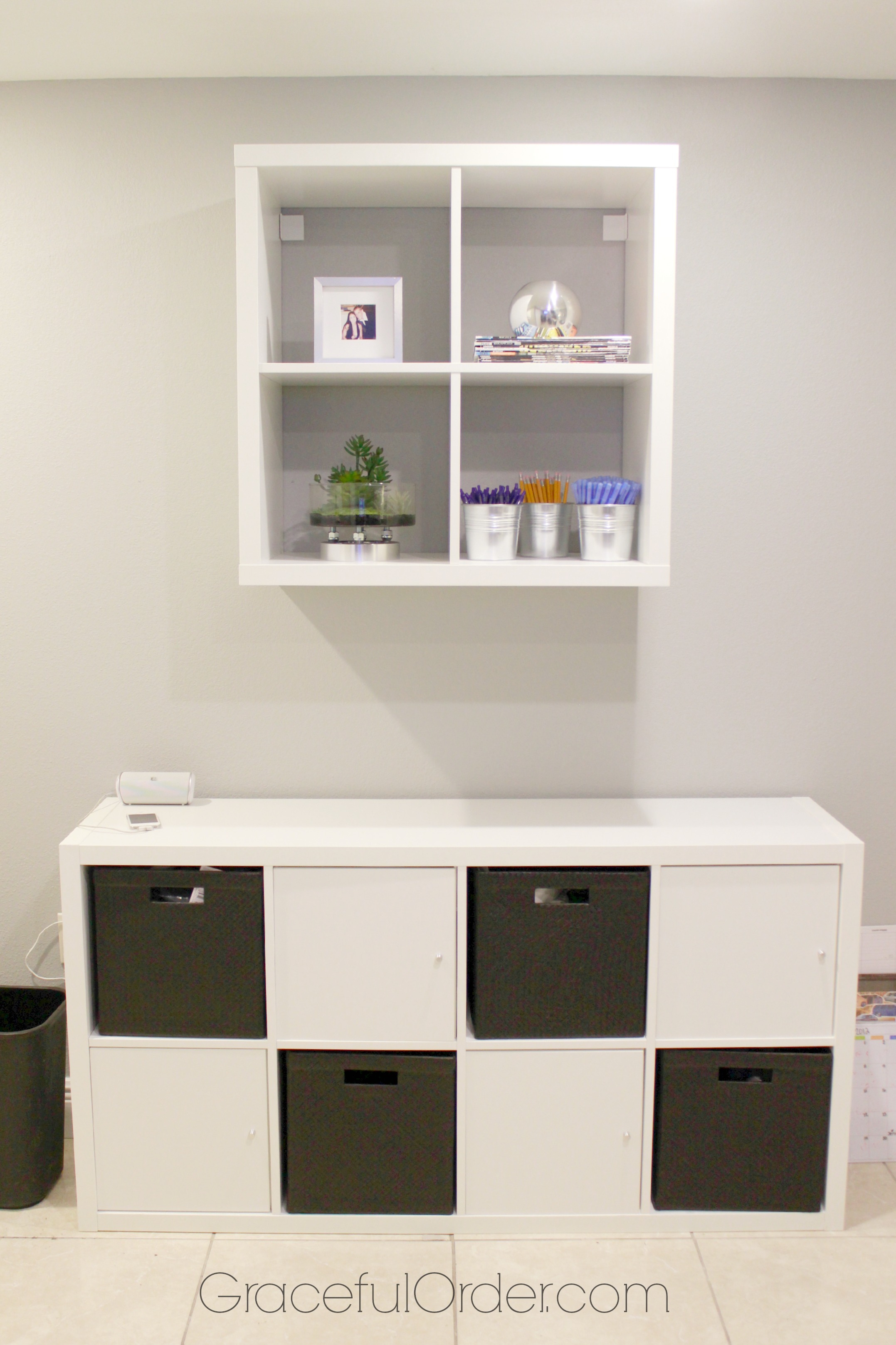 These men were so dedicated to the sales, maintenance and growth of the business, that the back office space was just not top priority. The store front was beautiful and we needed to make the back office match. With the help of IKEA, a screwdriver, and lots of good conversation, my friend and I embarked on a mission. To prove the men wrong To make the office beautiful. To create a space that was welcoming and practical. We started by painting the walls with a color called “Cloudy Day” by Sherwin Williams. We painted the moldings white. We also purchased white IKEA furniture that would be easy to clean and to customize. Here is the “after” picture of the wall pictured above.